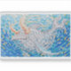 Una fantástica criatura con una mezcla de ballena y toro presenta deslizamientos a través de un vibrante fondo azul giratorio. Los colores se mezclan en un estilo de mosaico, mejorando la presencia mítica de la criatura.
