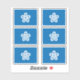 Un conjunto de 6 pegatinas de vinilo con un diseño con la bandera de la prefectura de Fukuoka en Japón (福 岡 県 , Fukuoka-ken), una bandera azul con un símbolo blanco