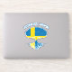 Elegante pegatina vinílico para sus aparatos electrónicos, ventanales para coches, equipos deportivos y más, con un árbol con silueta de raíces con la bandera de Suecia relleno y "Raíces suecas" texto superior curvo sobre fondo gris claro.