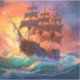 Pegatina Barco De Navegación En El Mar De Tormenta