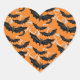 Pegatina en forma de corazón mostrado en naranja con una huella de murciélagos de Halloween. Personalizar este artículo o compra tal cual.