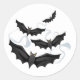 Pegatina de forma redonda de gran tamaño mostrado en la impresión de murciélagos de Halloween. Personalizar este artículo o compra tal cual.