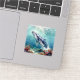 A oceanic themed stickers with a beautiful illustration of an impasto style whale swimming deep in the sea by vibrant colorful coral. A really beautiful coastal art. Colors used are teal, blue and soft coastal colors.