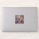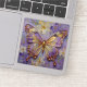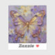 Sticker with an illustration of a beautiful gold and purple butterfly surrounded by white and purple flowers. It's done with an impasto style and just emanates beauty and grace.
