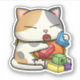 Gato de gato de bebé de color gordo con un tema cardíaco bandana, comiendo un pezón de bebé y jugando con un rompecabezas de madera. Un ilustracion de gatos delicioso y lindo para los amantes de los gatos.
