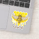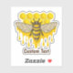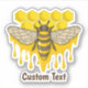 Abeja de miel con alas abiertas icono sobre colmena de abejas y gotas de miel. Texto personalizado.