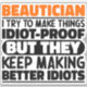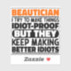 Gracioso Beautician Dice "Beautician, Trato De Hacer Que Las Cosas Sean Pruebas Idiotas, Pero Siguen Haciendo Mejores Idiotas". Agarra este divertido diseño de Beautician como un regalo gracioso para una madre, papá o amigo formidable.