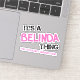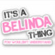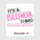 Es algo de Belinda que no entenderías con letras de tipografía rosada y negra con esténciles con Belinda con pinturas rosas.