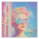 Esta impresionante imagen inspirada en el arte pop muestra a una mujer segura de sí misma con gafas de sol gigantes que reflejan una ciudad costera iluminada por el sol. Bañada en tonos neones eléctricos y suaves tonos pastel, la obra de arte irradia vibraciones retro-glam y energía de escape de verano. Perfecto para los aficionados al arte colorido de la moda, escenas de vacaciones de ensueño y decoración elegante de declaraciones, ideal para impresiones, ropa y accesorios de moda.