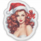 Un ilustracion vibrante captura a una encantadora mujer de cabello rizado y lujoso, adornada con un clásico sombrero de Santa María y un impresionante arco rojo. Su alegre expresión encarna el espíritu festivo de los Navidades, irradiando calor y alegría navideña.