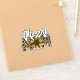 Pegatina portátil con texto, "Blessed Mom" decorado con estampado de chita/leopardo y un girasol rústico.