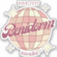 Benidorm España España Retro Vintage Design presenta una bola de disco en tonos rosa y melocotón de albaricoque. Este hermoso pegatina es un regalo perfecto, recuerdo o accesorio de decoración para los residentes de Benidorm, visitantes, turistas o fans.
