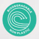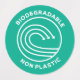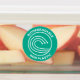 Un pequeño pegatina biodegradable y un pegatina no plástico para un embalaje respetuoso con el medio ambiente