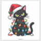 Pegatina Black Cat Christmas Lights Santa Hat Funny Xmas Ca