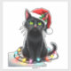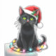 Pegatina Black Cat Christmas Lights Santa Hat Funny Xmas Ca