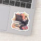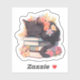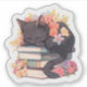 Pegatina Black Cat Sleeping on Books Sticker, Spring Flowe