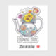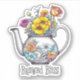 Tetera con flores en y dentro con las palabras "felicidad hecha".