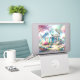 A dreamy blue cottage rests along a sunlit garden path, surrounded by blooming cherry trees and soft pastel florals. Gentle pinks, airy blues, and warm spring light create a peaceful cottagecore scene filled with charm and quiet nostalgia. The painterly watercolor style feels whimsical and storybook inspired, evoking cozy mornings, open windows, and flower filled lanes where time slows and beauty lingers. AI generated artwork.