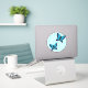Un bonito pegatina con un diseño de mandala azul dibujado a mano y mariposas azules.