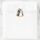 Incluye 20 pegatinas pequeños en una hoja. Añade un toque de elegancia a tus objetos con este encantador ilustracion de una novia y un novio rodeados de flores naranjas y trigo.