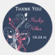 Esta moderna boda floral rosa redondeada de 1.5", azul marino y blanco te da las gracias pegatina o sello para sobres a la invitación nupcial que se muestra a continuación. Utilícelo para sellar sus tarjetas de agradecimiento para enviar un conjunto encantador. También puedes cambiar la forma y el tamaño y usarlo en tus favores de boda. TENGA CUIDADO si cambia usted mismo la forma del pegatina, ya que parte del diseño y del texto pueden cortarse. Para evitar una impresión errónea, por favor envíeme un correo electrónico para solicitar otra forma. Si necesita algún otro elemento que coincida, o ayuda para personalizar este pegatina, envíe un correo electrónico a niteowlstudio@gmail.com.