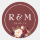 Diseño floral sobre fondo burdeos con texto y color personalizado. Por su boda temática de otoño.