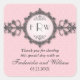 Un pegatina influenciado por la época Art Decó. Una banda ornamentada, que parece un reloj de pulsera victoriano, muestra un medallón sosteniendo el monograma de la pareja. Añadir o reducir el espacio entre las iniciales primera y última para equilibrar con el monograma central. El fondo rosado imprime un patrón sutil como marca de agua. Un aspecto clásico que le da un ambiente a cualquier boda. Añade un mensaje especial a tus invitados de abajo. Utilícelos como sobre o sellos de paquete, un favor divertido o úsalos para cerrar las bolsas de favores. Disponible en colores alternativos con productos coincidentes.