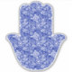 Mano de Hamsa blanca y azul colorido. La mano está impresa con un estilo bohemio delicado.