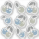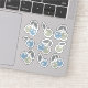 Little custom cut cherry stickers matching the Boho Beach Cherries collection of cute tossed farmer's market summer fresh fruit pattern with small muted blue and sage cherries and slate grey leaves set on a solid cloud white background.