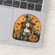 Hermosa bruja retro con dos gatos y calabazas. Este diseño se hizo con una combinación de ai, photoshop e ilustrador.