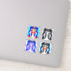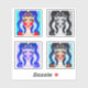 Una imagen de una hermosa princesa de bonito en colores brillantes, usando una corona dorada, creada por una IA, luego editada para incluir una versión en blanco y negro, una versión azul, y una versión en rojo oscuro y verde azulado de la imagen personalizado en un conjunto de 4 pegatinas!