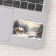 Buen pegatina con un pueblo en la noche de los Navidades.