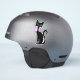 Este pegatina vinílico es una bonito delgada sentada en un gato negro con grandes ojos verdes que lleva una proa brillante rosa pálido alrededor de su cuello.