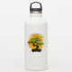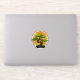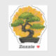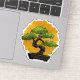 Un hermoso ilustracion de un bonsai que se sienta en una olla negra contra un fondo circular amarillo brillante.