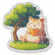 Pegatina Bookish Chubby Cat Under Tree Sticker