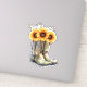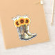 Pegatina contorno con un lindo ilustracion con botas de vaquero llenas de girasoles. Imagen original pintada con acuarelas.