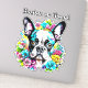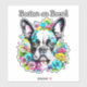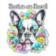Perro Terrier de Boston rodeado de flores rosas, amarillas y azules. Ai art. Un regalo para los propietarios de Boston Terrier. Boston a bordo.