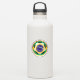 * A gold ring surrounds this soccer ball with Brazilian flag over the ball.