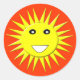Este conjunto de pegatinas redondos presenta este brillante sol amarillo sonriente que está garantizado para hacerte sonreír incluso en los días más miserables. Está sobre un fondo rojo cálido y tiene una gran boca de carita blanca y enormes ojos negros con pupilas blancas.