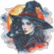 Pegatina Bruja con lobo - Halloween Fan Fun 2
