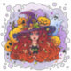 Pegatina Bruja, fantasma, calabazas y un gato negro