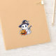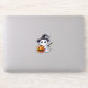 Un fantasma kawaii vestido de bruja con una escoba sostiene una linterna sonriente. Este lindo pegatina es una manera divertida de celebrar Halloween.