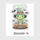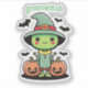 Este es un lindo pegatina de Halloween que presenta una bruja verde rodeada de murciélagos espeluznantes y calabazas de Halloween. Se puede personalizar el texto predeterminado "greenwitch".