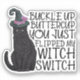 Tanto si te gustan todas las cosas brujas como si disfrutas de un toque de humor descarado, este diseño seguramente te encantará. Perfecto para los entusiastas de Halloween, los amantes de los gatos o cualquiera que disfrute de una pizca de capricho en sus vidas, esta imagen capta la esencia de la diversión y el encanto. Imagina este diseño adornando tus productos Zazzle favoritos, desde camisetas y tazas acogedoras para beber pociones hasta pegatinas hechizantes y una decoración encantadora. Deja que la magia de este gatito negro descarado con su encanto brumoso ilumine tu día y le dé un toque de fantasía a tu mundo. Entonces, ¿por qué esperar? Abraza la magia, agita algunas risas y agrega una ramificación de encanto a tu vida con "Buckle Up Buttercup, Just Flipped My Witch Switch" - exclusivamente en Zazzle.