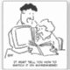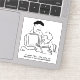 Pareja buscando cómo encender un equipo nuevo. Divertido personalizado de computadoras. Los nuevos propietarios de computadoras están buscando en el folleto de instrucciones tratando de averiguar cómo activarlo. Regalo para el usuario de la computadora.