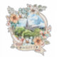 A panoramic illustration of Buzet, perched on a hill above the Mirna River valley, is framed by a rich floral border symbolizing Istria’s natural beauty and calm atmosphere. The decorative banner featuring the town’s name highlights its historical charm and romantic character. This design blends architecture, nature, and tradition into a decorative, souvenir-style illustration.