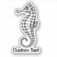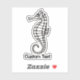 Icono estilizado en blanco y negro de un caballito de mar. Texto personalizado.