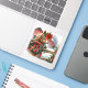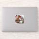 Pegatina Caballo marrón bonito en Navidades de oso rojo