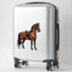 Un caballo marrón audaz que lleva una silla de montar y una brida, representado en un estilo de dibujos animados limpio. Ideal para proyectos ecuestres, agrícolas y con temática animal con un ambiente fuerte y enérgico.