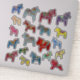 Estos caballos de Dala fueron diseñados por Julia Morrill. Algunos eran dibujos y pinturas, mientras que otros estaban hechos a caballo de madera tallada que hizo. Muchos están en caballos rojos, algunos en amarillo, azul, rosa, verde y morado. Esta es la selección más amplia de colores y estilos en una sola hoja pegatina que hemos visto.